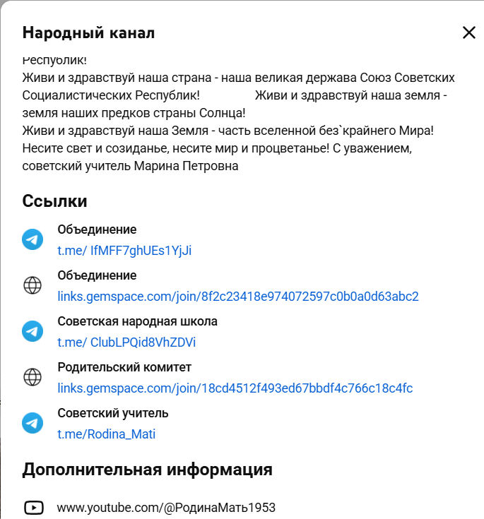 Народный канал https://www.youtube.com/@РодинаМать1953 2,34 тыс. подписчиков