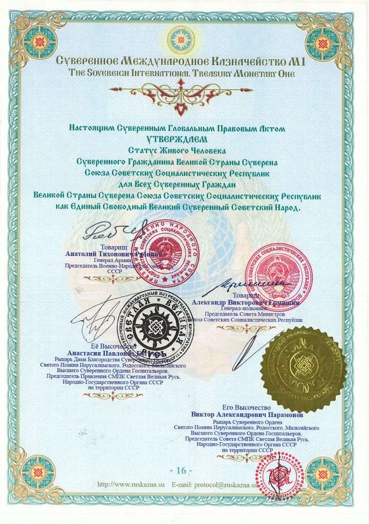 Полный документ на сайте ГКЧП СССР 11.03.2023г. Суверенный Глобальный Правовой Акт № А3 01
